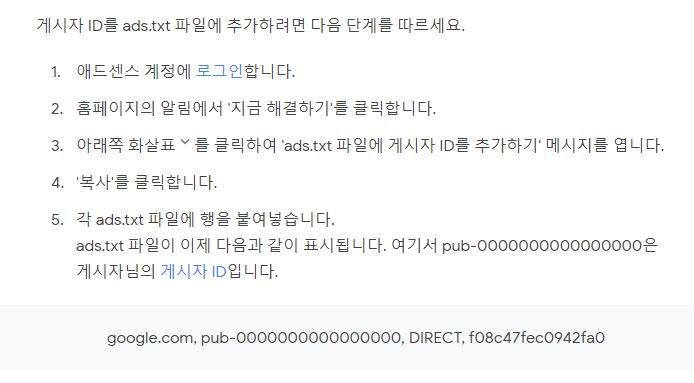 그리고 저 pub-000000000000에서숫자 0대신에 자신의 웹 게시자 ID의 숫자부분을 넣어주면 된다